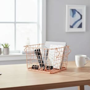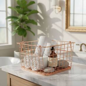 Com alças laterais que facilitam o manuseio, a Cesta Decorativa em Metal Cobre Rose Gold é uma peça prática e elegante que complementa a decoração com um toque contemporâneo e sofisticado.