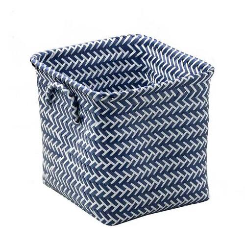 Perfeito para quem busca praticidade sem abrir mão da estética! Com trançado moderno azul e branco, este cesto decorativo é ideal para armazenar objetos menores em quartos infantis, banheiros, closets ou escritórios.