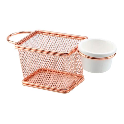 01 Cesta para Alimentos em Aço Inox Rose com Molheira De Melamina 10 x 8 x 7,5cm