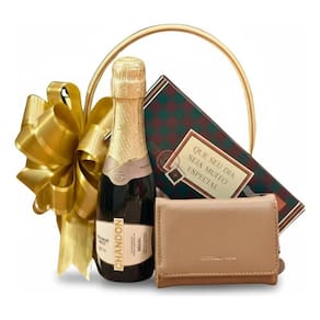 Cesta Presente Chandon Baby + Chocolate + Carteira Feminina Cesta Chandon Baby com Chocolate e Carteira Feminina - presente completo e elegante Surpreenda com um presente pronto para entregar. A cesta Decorally Home Decor combina Chandon Baby 187 ml, chocolate premium e uma carteira feminina cores , tudo em uma cesta com alça e acabamento dourado. Vai embalada para presente com celofane, laço caprichado e tag para mensagem - perfeita para aniversários, fim de ano, clientes, colaboradoras e amigos-secretos. Conteúdo da Cesta 1 Chandon Baby 187 ml 1 Chocolate marca pode variar: seleção premium 1 Carteira Feminina cores : preto, marrom, nude, off-white ou ouro velho 1 Cesta com alça aprox. 20 13 cm Embalagem para presente com laço + tag para recado As cores da carteira podem ser escolhidas Sim. Envie uma mensagem após a compra indicando a cor desejada. O envio é sujeito à disponibilidade. O chocolate e a embalagem são iguais às fotos Mantemos o padrão de qualidade, mas marcas/estampas podem variar conforme disponibilidade. Vai pronto para presentear Sim. Acompanha celofane, laço e tag. Enviamos dentro de caixa para proteção. Qual o tamanho da cesta Aproximadamente 20 13 cm medida da base, pode variar levemente . Existe cartão personalizado Incluímos tag para mensagem. Cartão maior pode ser adicionado mediante consulta. Há restrição de venda Sim. Bebida alcoólica: venda proibida para menores de 18 anos. Consumo responsável. Marca: Não Informado Ean: 7893687019785