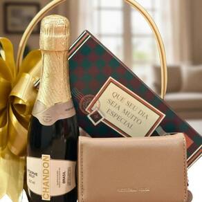 Cesta Presente Chandon Baby + Chocolate + Carteira Feminina Cesta Chandon Baby com Chocolate e Carteira Feminina - presente completo e elegante Surpreenda com um presente pronto para entregar. A cesta Decorally Home Decor combina Chandon Baby 187 ml, chocolate premium e uma carteira feminina cores , tudo em uma cesta com alça e acabamento dourado. Vai embalada para presente com celofane, laço caprichado e tag para mensagem - perfeita para aniversários, fim de ano, clientes, colaboradoras e amigos-secretos. Conteúdo da Cesta 1 Chandon Baby 187 ml 1 Chocolate marca pode variar: seleção premium 1 Carteira Feminina cores : preto, marrom, nude, off-white ou ouro velho 1 Cesta com alça aprox. 20 13 cm Embalagem para presente com laço + tag para recado As cores da carteira podem ser escolhidas Sim. Envie uma mensagem após a compra indicando a cor desejada. O envio é sujeito à disponibilidade. O chocolate e a embalagem são iguais às fotos Mantemos o padrão de qualidade, mas marcas/estampas podem variar conforme disponibilidade. Vai pronto para presentear Sim. Acompanha celofane, laço e tag. Enviamos dentro de caixa para proteção. Qual o tamanho da cesta Aproximadamente 20 13 cm medida da base, pode variar levemente . Existe cartão personalizado Incluímos tag para mensagem. Cartão maior pode ser adicionado mediante consulta. Há restrição de venda Sim. Bebida alcoólica: venda proibida para menores de 18 anos. Consumo responsável. Marca: Não Informado
