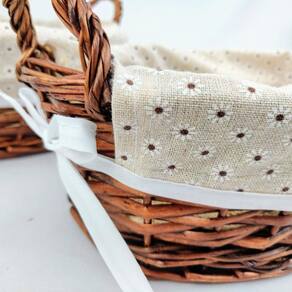 Cesta Tecido Oval Marrom Floral Cesto Decorativo 35/30Cm 2 Peças