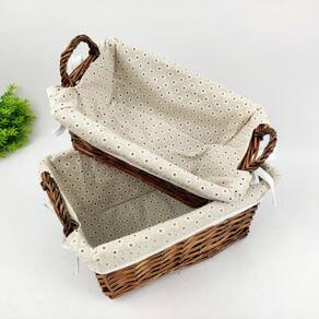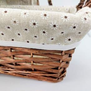 Cesta Tecido Retangular Marrom Floral Decorativo 35/30Cm 2 Peças