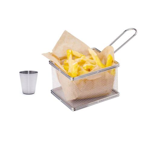 Contem: 1 Copinho Molho Capacidade: 30ml Medidas: 4 x 3,5 cm 1 Cestinha de Servir Medidas: 17 x 13 cm Material: Aço Inoxidavel Marca: CASACHA