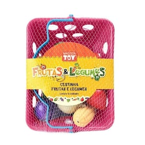 Acompanha uma cestinha plástica leve e durável, com alças práticas que facilitam o transporte e incentivam brincadeiras de faz de conta, como feira, cozinha ou mercado.