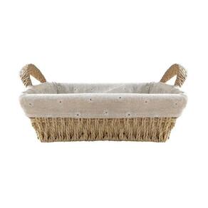 Forro: o forro da bandeja é feito em 100% algodão, na cor crua, com estampa de flores pequenas e delicadas.