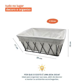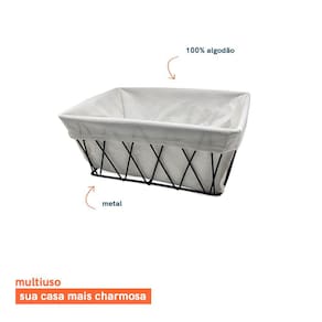 Multiuso: pode ser usado para organizar roupas, acessórios, objetos etc. E também para servir pães, torradas, frutas e outros à mesa. Versátil: vai bem na cozinha, na mesa, na sala - você que manda! Decorativo: a estrutura do aramado em metal com o forro de tecido branco garante um charme a mais na decoração. Forro remóvivel e lavável: para limpar é superfácil, é só remover o forro e lavar com sabão à mão ou na máquina.