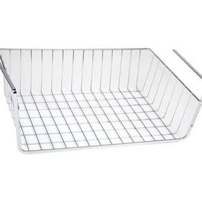 Dimensões: 40cm de comprimento (boca/alças) / 36cm (base) x 24cm de profundidade x 11cm de altura (cesto)/ 15cm ( altura total) Para prateleiras com até 4cm de espessura