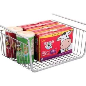 Cesto aramado de metal para prateleira Cesto para prateleira de metal Organize seu armário facilmente com este cestinho pendure em prateleiras de armários da cozinha, banheiro ou lavanderias, para condimentos e conservas, papel toalha/ filme/ manteiga, produtos de higiene e limpeza e muito mais ele cabe em prateleiras de qualquer tipo e fica lindo e discreto Você pode pendurar para o lado de dentro ou de fora, de acordo com o seu gosto