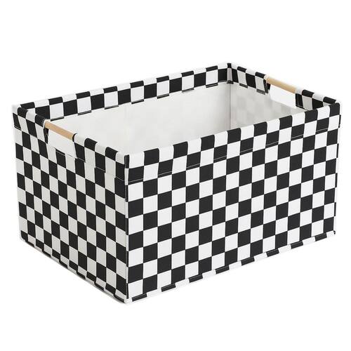 Cesto armazenamento decoração roupa com alça de bambu Medidas: 44 x 28 x 20cm ========== sobre o produto ========== O cesto armazenamento decoração roupa com alça é a união perfeita entre funcionalidade e charme. Ideal para organizar itens do dia a dia como cosméticos, acessórios, objetos de escritório ou itens de lavanderia, ele também se destaca como peça decorativa. Com design moderno e acabamento clean, é uma ótima escolha para manter a casa organizada com estilo e leveza. ========== especificações ========== Design quadriculado em preto e branco, combina com diversos ambientes. Medidas ideais de 44 x 28 x 20cm, perfeito para nichos, prateleiras ou gavetas. Versátil e multiuso, pode ser em banheiros, quartos, escritórios e mais. Leve, resistente e fácil de limpar, feito para o dia a dia. ========== ficha técnica ========== Cor: preto Medidas: 44 x 28 x 20cm Material: poliester / bambu Marca: organize já : 3 meses Estamos online para quaisquer dúvidas, Agradecemos e aguardamos o seu pedido. P: o cesto é empilhável R: sim, pode ser empilhado com outros do mesmo modelo, otimizando o espaço. P: o produto é novo ou Marca: Não Informado Ean: 9999916922265