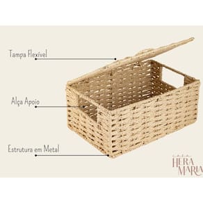 Cesto caixa organizadora fibra natural alça e tampa grande Cor: natural / bege Perfeitos para auxiliar na organização de diversos ambientes, os cestos garantem praticidade, soluções simples e ainda aquecem o espaço.