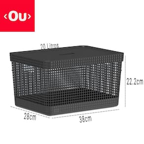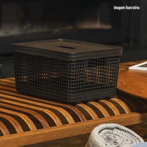 Cesto Caixa Organizadora Grid 20Lts com Tampa Ou Martiplast Cor: Preto Cesto Caixa Organizadora Grid 20Lts com Tampa Ou Martiplast cesto organizador de bancadacaixa com tampa para escritóropode ser utilizada como floreiradisponível em estoque Cores deste produto verificar estoque - Azul- Branco- Bege- Cinza- Preto Medidas: Altura: 22.2cm Largura: 28cm Profundidade: 38cm Material: produtos em plástico 100% pós-consumo. Linha: Organizar Modelos: Grid Tampa multiuso com pegada fácil. São diversas opções cestas com cores que combinam com qualquer ambiente da sua casa.A linha foi desenvolvida priorizando o cuidado com a sua rotina, por isso, possui furos que facilitam a ventilação e bordas maiores que facilitam a pega e transporte. OBS1: Imagens meramente ilustrativas. Anúncio referente à 01 unidade de cesto Grid. OBS2: Cores podem alterar levemente entre telas e monitores.