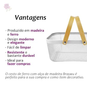 Cesto Com Alça em Madeira e Ferro Imporiente 40x28x18cm Cesto de Ferro com Alça em Madeira Medidas: 40x28x18cm Composição: Ferro Imporiente Código de Barras: 7899790935707 Peso: 0,739kg Ref: CA09777 DÚVIDAS Se tiver dúvida faça-nos um pergunta no campo abaixo do produto. : : Entregamos para todo o Brasil.