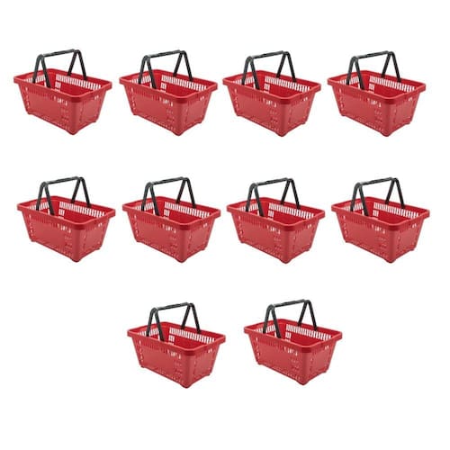 KIT COM 10 CESTO DE COMPRAS D100 DELLAPLAST 16L 45x29x19 VERMELHO 3000.13Cesta com alça manual, muito prática, pois permite que o cliente ao realizar sua compra carregue diversos itens ao mesmo tempo, auto-serviço (self-service). Alças com sistema de travamento que garante maior segurança ao manuseio.Recomendada para supermercado, mercearias, farmácias, padarias, perfumarias, conveniência etc.ESPECIFICAÇÕES:Produzidos em PP (Polipropileno);Encaixável, empilháveis (otimiza espaço)Fácil higienizaçãoDIMENSÕES (AxLxP):Altura: 19,5 cmLargura: 45 cmProfundidade: 29 cmPeso da cesta: 620 gr ~Garantia: 90 dias período legal