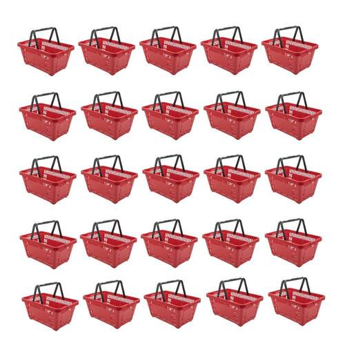 KIT COM 25 CESTO DE COMPRAS D100 DELLAPLAST 16L 45x29x19 VERMELHO 3000.13Cesta com alça manual, muito prática, pois permite que o cliente ao realizar sua compra carregue diversos itens ao mesmo tempo, auto-serviço (self-service). Alças com sistema de travamento que garante maior segurança ao manuseio.Recomendada para supermercado, mercearias, farmácias, padarias, perfumarias, conveniência etc.ESPECIFICAÇÕES:Produzidos em PP (Polipropileno);Encaixável, empilháveis (otimiza espaço)Fácil higienizaçãoDIMENSÕES (AxLxP):Altura: 19,5 cmLargura: 45 cmProfundidade: 29 cmPeso da cesta: 620 gr ~Garantia: 90 dias período legal