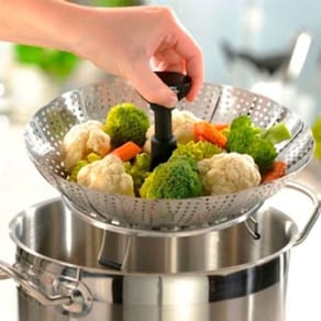 A grande vantagem do cozimento a vapor, e que ele preserva todas as vitaminas e propriedades de seus vegetais, ao contrario do cozimento na agua, onde as vitaminas se perdem.