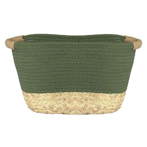 1 Cesto de Fibra Natural e Algodão com Alça Trançado Verde Esmeralda 20x21x38cm 3619 - Paramount