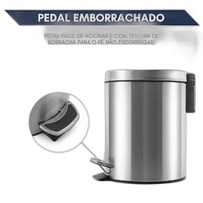 Cesto de lixo Inox 3L com Pedal Emborrachado Banheiro Cozinha Você está cansado de lidar com lixeiras de plástico que acabam se rompendo facilmente e não mantém sua higiene