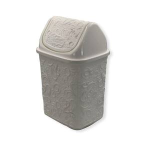 01 LIXEIRA DE PLÁSTICO RENDA FLORAL BRANCA 4,5 LITROS