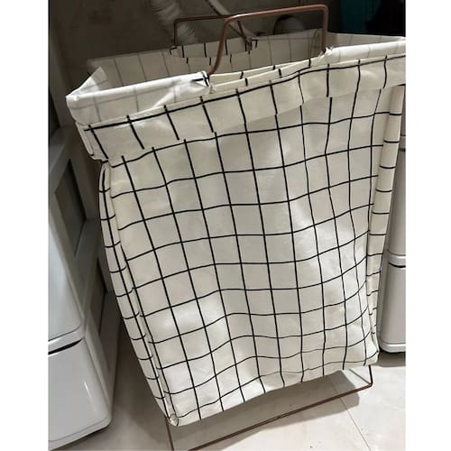 Feito em tecido reforçado, é resistente à água e poeira, garantindo durabilidade e fácil manutenção. Além disso, conta com suporte metálico que proporciona firmeza e estabilidade, mantendo o cesto sempre na posição ideal.