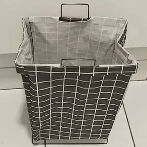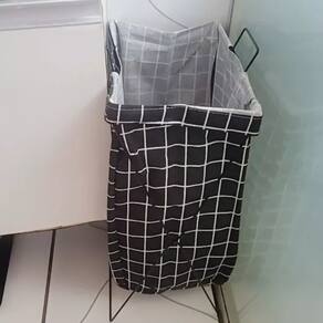 Feito em tecido reforçado, é resistente à água e poeira, garantindo durabilidade e fácil manutenção. Além disso, conta com suporte metálico que proporciona firmeza e estabilidade, mantendo o cesto sempre na posição ideal.