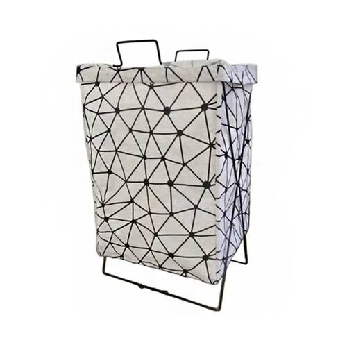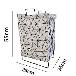 Feito em tecido reforçado, é resistente à água e poeira, garantindo durabilidade e fácil manutenção. Além disso, conta com suporte metálico que proporciona firmeza e estabilidade, mantendo o cesto sempre na posição ideal.