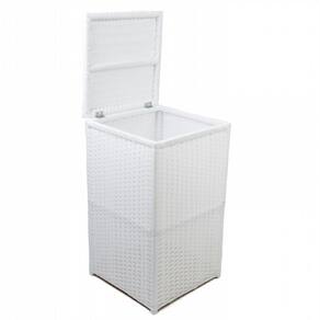 Medidas: 40cm (comprimento) x 40cm (largura) x 70cm (altura). Cor: Branco. Utilidade: Organizador de Quarto, área externa e/ou banheiro. Conteúdo da Embalagem: Um baú cesto de roupa. Necessita Montagem: Não. Litragem: 112 litros. Composição/material: Madeira, Fibra Sintética e fundo em Mdf.