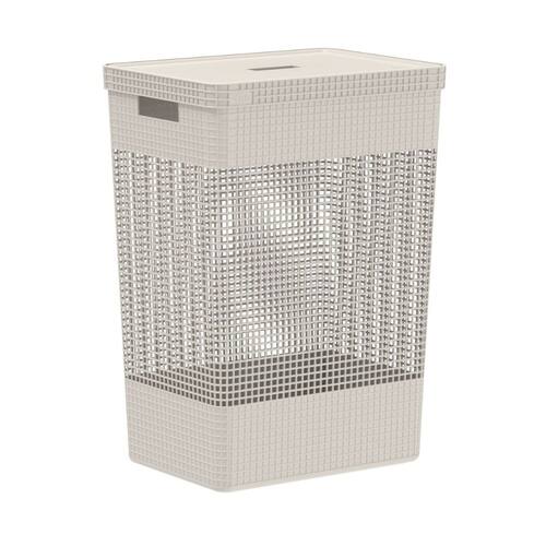 Cesto de Roupa Grid Bege 49 L com Tampa 38 x 28 x 55,2 cm Ou