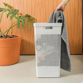 A linha de Cestos Grid foi desenvolvida com um mix perfeito entre conforto, design e funcionalidade. Os cestos possuem diversos tamanhos, são empilháveis e versáteis. São diversas opções com cores neutras e acabamento fosco, que combinam com qualquer ambiente. Podem ser utilizados em closets, cozinhas, lavanderias ou até mesmo na sala de estar para decorar. Além de possuir tampa em bambu que traz um toque a mais de sofisticação e elegância para qualquer ambiente da sua casa. Os Cestos Grid são perfeitos para aliar organização e decoração na sua casa.
