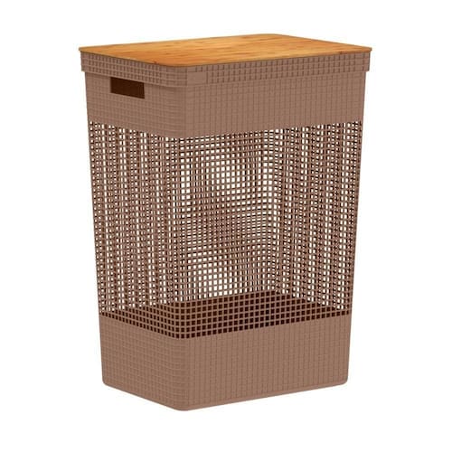 Cesto de Roupa Grid Marrom Amêndoa 49 L com Tampa de Bambu 38 x 28 x 55,6 cm Ou - Na sua casa