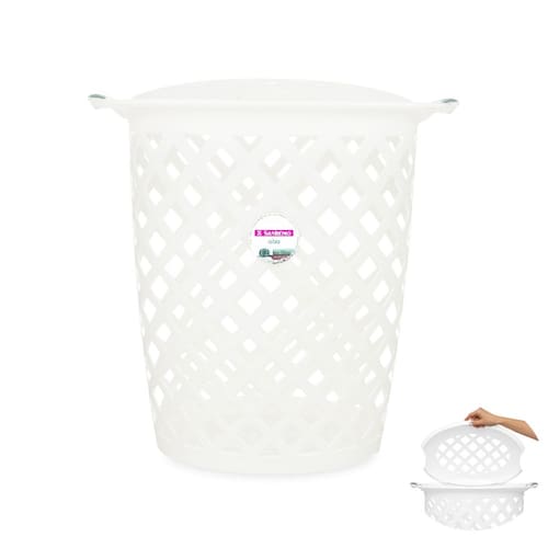 Cesto organizador com design moderno, tampa e totalmente telado: ideal para acondicionar as roupas sujas pois a passagem de ar evita o mau odor e você tem melhor visualização do conteúdo interno. E a praticidade não fica só nisso: possui também pegas laterais que ajudam no vai e vem do dia a dia.
