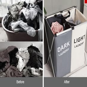 Adquira o Cesto de Roupa Suja Duplo Organizador para Lavanderia e descubra como é fácil manter sua casa limpa e organizada com estilo e praticidade. Não perca a oportunidade de transformar o seu espaço!