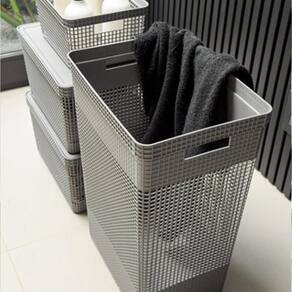 São diversas opções cestas com cores que combinam com qualquer ambiente da sua casa. A linha foi desenvolvida priorizando o cuidado com a sua rotina, por isso, possui furos que facilitam a ventilação e bordas maiores que facilitam a pega e transporte.