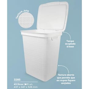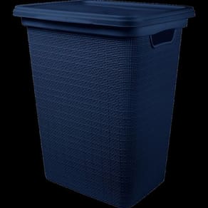 Cesto de Roupas 45 Litros Juta Azul Com Tampa 43x35x52CM Com capacidade de 45L, o cesto de roupa possui acabamento exclusivo e inspirado no tecido juta. Versátil, design moderno e prático para organizar seu quarto, banheiro ou lavanderia