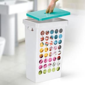 O Cesto de Roupas Quadrado com Tampa de 43 litros branco da Arthi é fabricado com plástico resistente e design moderno e elegante. Apesar da sua capacidade volumétrica, ideal para facilitar no dia a dia, o cesto da Arthi ocupa pouco espaço devido ao seu formato estreito. Tenha um item moderno, prático e durável que facilita a organização do seu lar