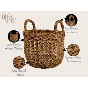 A alça integrada facilita o transporte e a movimentação, proporcionando praticidade no uso diário. Transforme a organização em uma experiência estilosa com o cesto em fibra natural, uma peça versátil que adiciona elegância funcional ao seu lar.