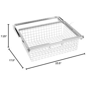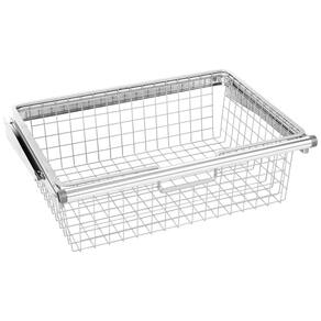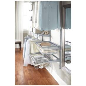 Projetado para aumentar a versatilidade e funcionalidade dos organizadores de closet de configurações de borracha Cesta de arame deslizante cria espaço em forma de gaveta em seu armário Pode ser adicionado aos kits de configurações existentes Acabamento em titânio