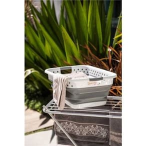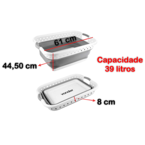1 Cesto dobrável para roupas. Possui design moderno e compacto, proporcionando melhor aproveitamento de espaço para guardá-lo após o uso, além de alças laterais, que possibilitam maior praticidade no transporte. Indicado para uso doméstico. Para expandir, pressione o fundo até obter o formato completo.