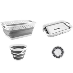 Conteúdo da Embalagem: 1 Cesto dobrável para roupas 39L + 1 Balde dobrável 10L VONDER - Cesto dobrável para roupas 39L Possui design moderno e compacto, proporcionando melhor aproveitamento de espaço para guardá-lo após o uso, além de alças laterais, que possibilitam maior praticidade no transporte. indicado para uso doméstico. Para expandir, pressione o fundo até obter o formato completo. legal: 90 dias Detalhes Técnicos Material: Polipropileno e borracha termoplástica Dimensões: Aberto: 610 mm x 445 mm x 250 mm; Fechado: 610 mm x 445 mm x 80 mm Capacidade: 39 Litros Temperatura máxima do líquido: 80C Massa aproximada peso : 1,35 kg - Balde dobrável 10 litros VONDER Conteúdo da Embalagem: 1 Balde dobrável. Possui design moderno e compacto, proporcionando melhor aproveitamento de espaço para guardá-lo após o uso. Indicado para uso doméstico. Para expandir, pressione o fundo até obter o formato completo. legal: 90 dias Detalhes Técnicos Temperatura máxima do líquido: 60C Dimensões: Aberto: 315 mm x 255 mm; Fechado: 315 mm x 50 mm Marca: Não Informado