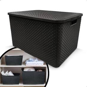 Cesto organizador com tampa, tamanho Grande. Cor: Preto. Composição: Plástico As Caixas Rattan, facilitam a organização deixando tudo em seu devido lugar e decorando ao mesmo tempo. As caixas nas organizações são funcionais, pois você determina o local que cada objeto será guardado, delimitando o espaço ocupado por eles. Quando os espaços são delimitados, a organização flui de forma leve.