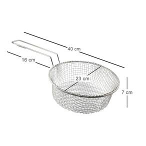 Com uma altura de 7cm, comprimento total de 40cm e comprimento do cabo de 16cm, o Cesto Fritura para Frigideira Redondo Peneira Friturama 23Cm possui uma largura de 23cm, proporcionando espaço suficiente para fritar uma quantidade maior de alimentos de uma só vez.