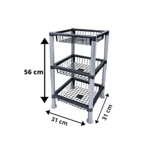 - Forma fácil e rápida de organizar suas coisas em qualquer cômodo da casa, principalmente na cozinha; - Altura Máxima de 56cm com os 3 andares; - Material de qualidade, ao desmontar, vira uma peça compacta; -fácil higienização; -suporta até 3 kg por cesto; -produto Resistente, fácil montagem e prático para o dia a dia.