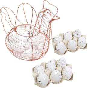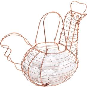 Material: Metal e Isopor;Medidas: Galinha 25cm x 30cm, Ovos 6cm x 4cm;Cores: Branco e Cobre;Conteúdo Da Embalagem: