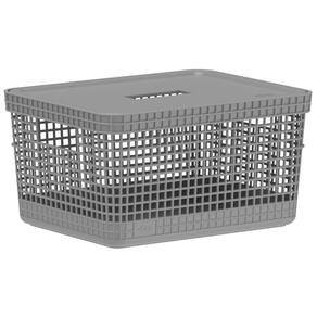 Cesto Grid com Tampa 8 Litros Caixa Organizadora Escritório Cor: Cinza Cesto Grid com Tampa 8 Litros Caixa Organizadora Escritório cesto organizador de bancada caixa com tampa para escritóro pode ser utilizada como floreira disponível em Cores deste produto verificar - Azul - Branco - Bege - Cinza - Preto Medidas: Altura: 15.2cm Largura: 28cm Profundidade: 22cm Material: produtos em plástico 100% pós-consumo. Linha: Organizar Modelos: Grid Tampa multiuso com pegada fácil. São diversas opções cestas com cores que combinam com qualquer ambiente da sua casa. A linha foi desenvolvida priorizando o cuidado com a sua rotina, por isso, possui furos que facilitam a ventilação e bordas maiores que facilitam a pega e transporte. OBS1: Imagens meramente ilustrativas. Anúncio referente à 01 unidade de cesto Grid. OBS2: Cores podem alterar levemente entre telas e monitores. Ean: 7908466013653