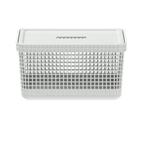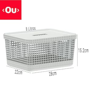 Cesto Grid com Tampa 8 Litros Caixa Organizadora Escritório Cor: Branco Cesto Grid com Tampa 8 Litros Caixa Organizadora Escritório cesto organizador de bancada caixa com tampa para escritóro pode ser utilizada como floreira disponível em Cores deste produto verificar - Azul - Branco - Bege - Cinza - Preto Medidas: Altura: 15.2cm Largura: 28cm Profundidade: 22cm Material: produtos em plástico 100% pós-consumo. Linha: Organizar Modelos: Grid Tampa multiuso com pegada fácil. São diversas opções cestas com cores que combinam com qualquer ambiente da sua casa. A linha foi desenvolvida priorizando o cuidado com a sua rotina, por isso, possui furos que facilitam a ventilação e bordas maiores que facilitam a pega e transporte. OBS1: Imagens meramente ilustrativas. Anúncio referente à 01 unidade de cesto Grid. OBS2: Cores podem alterar levemente entre telas e monitores. Ean: 7908466013622