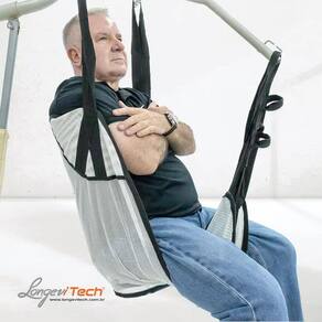 Desenvolvido para ser utilizado com sistemas de guincho hospitalar ou domiciliar, o cesto possui estrutura reforçada e tecido resistente à água, proporcionando suporte anatômico ao corpo e facilitando a movimentação do paciente com estabilidade e cuidado.