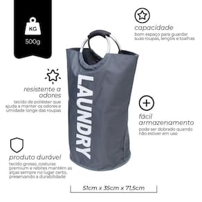 Cesto para Lavanderia Cinza com Alça - Mimo Style CAPACIDADE: O cesto de lavanderia oferece bom espaço para guardar suas roupas, lençóis e toalhas. Com formato alto, aproveita ao máximo o espaço vertical e os cantos para armazenamento, economizando de espaço. Medidas: C 51 cm x L 35 cm x A 71,5 cm com peso de 500 g. RESISTENTE A ODORES: Tecido de poliéster Oxford 600D de alta densidade com revestimento é utilizado para produzir o cesto de roupa suja, que ajuda a manter os odores e umidade longe das roupas com uma camada interna, perfeito para sua lavanderia. PRODUTO DURÁVEL: O tecido grosso do cesto de roupa suja evita que o cesto de roupa com alças se rasgue e tombe. Costuras premium e rebites de cestos de roupas mantêm as alças sempre no lugar certo, sem rasgar ou danificar, preservando a durabilidade. FÁCIL ARMAZENAMENTO: Cesto de roupa pode ser dobrado de forma plana em um tamanho portátil pequeno quando não estiver em uso. A estrutura da alça de alumínio com revestimento emborrachado pode suportar cargas pesadas com tranquilidade. ESCOLHA IDEAL: O cesto para roupas sujas é a resposta para todos os problemas de armazenamento, contribuem para o melhor aproveitamento e otimização de espaço. Além de criar soluções de organização e ainda enriquecer a decoração da sua lavanderia. de 3 meses oferecido pelo fabricante Imagem meramente ilustrativa Código: 229631 Modelo: 7440 Ean: 7908216107090 Marca: Não Informado