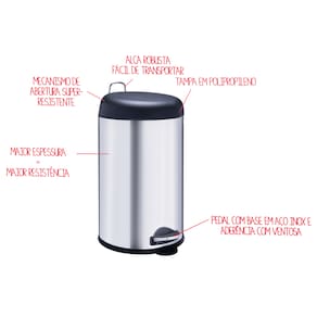 Lixeira Inox Com Pedal e Tampa Plástica 30 Litros. Uma casa bonita merece atenção em todos os detalhes. Com a lixeira da Linha Decorline você dá um ar mais divertido e mordeno ao seu escritório ou á sua cozinha. Além da beleza, a liexeira Decorile tambem se destaca pela funcionalidade. O pedal deste modelo tem a base em aço inox e aderência com ventosas, o que garante estabilidade de usa. A tampa é feita em polipropileno, um material durável e fácil de limpar. Com capacidade para 30L, a lixeira tem o corpo em aço inox e tampa em plástico.