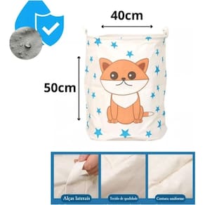 Cesto Multiuso Organizador de Brinquedos Gato 40X50 Tema: Gato Cesto Organizadores para Roupas Sujas e Brinquedos Mantenha a casa sempre organizada e livre da bagunça com o nosso cesto organizador multifuncional Ideal para roupas sujas, brinquedos, roupas de cama ou outros itens, este cesto é a solução perfeita para quem busca praticidade e estilo na organização. Espaçoso e Resistente: Feito com material durável, este cesto comporta grandes quantidades de roupas e brinquedos, perfeito para o dia a dia. Design Moderno: Combina com qualquer ambiente, seja no quarto, lavanderia ou sala de brinquedos. Seu design discreto e elegante mantém tudo organizado sem perder o charme. Fácil de Transportar: Possui alças resistentes que facilitam o transporte de um cômodo para outro. Versátil: Além de roupas e brinquedos, você pode usá-lo para organizar diversos itens da casa, como cobertores, almofadas, ou até produtos de limpeza. Transforme a organização da sua casa com um único item prático e eficiente Vale lembrar que temos como compromisso oferecer nosso melhor para que possamos criar laços de confiança e credibilidade junto aos nossos clientes