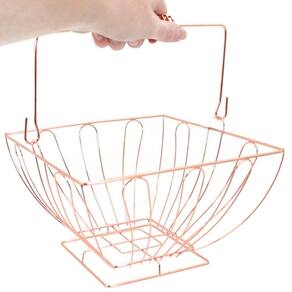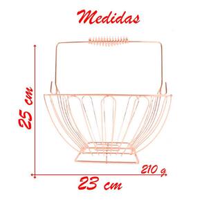 Cesto Multiuso Porta Frutas Aço Inox Rosé Quadrado Fruteira Com Alça 23cm -